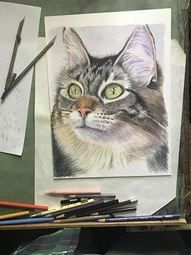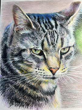 Ray is a Southwick Artist who creates realistic pet and wildlife portraits. He is a retired technical illustrator who worked for various major corporations in the Springfield and Hartford areas during the 80's and 90's. He owned and operated Shugarts Martial Arts in Agawam for over 20 years. When Covid-19 threatened us in 2020, he retired from teaching martial arts. Ray formed a new business, R.S.V.P., standing for Ray Shugart Visual Presentations. He creates his realistic visual presentations in his home studio for clients all over the country who found his business on Facebook.