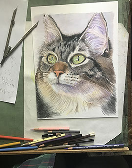 Ray is a Southwick Artist who creates realistic pet and wildlife portraits. He is a retired technical illustrator who worked for various major corporations in the Springfield and Hartford areas during the 80's and 90's. He owned and operated Shugarts Martial Arts in Agawam for over 20 years. When Covid-19 threatened us in 2020, he retired from teaching martial arts. Ray formed a new business, R.S.V.P., standing for Ray Shugart Visual Presentations. He creates his realistic visual presentations in his home studio for clients all over the country who found his business on Facebook.